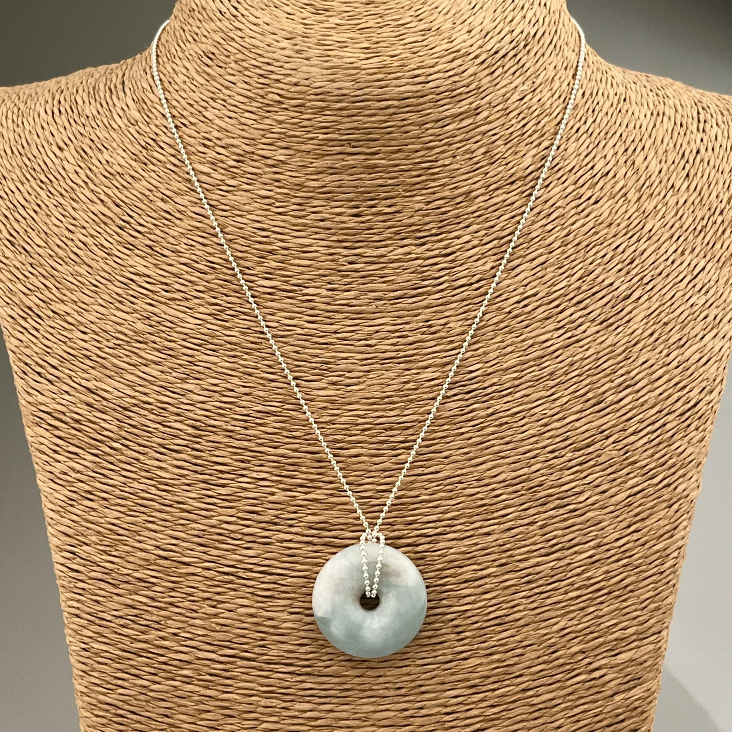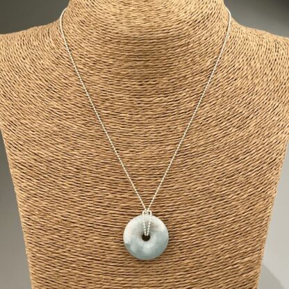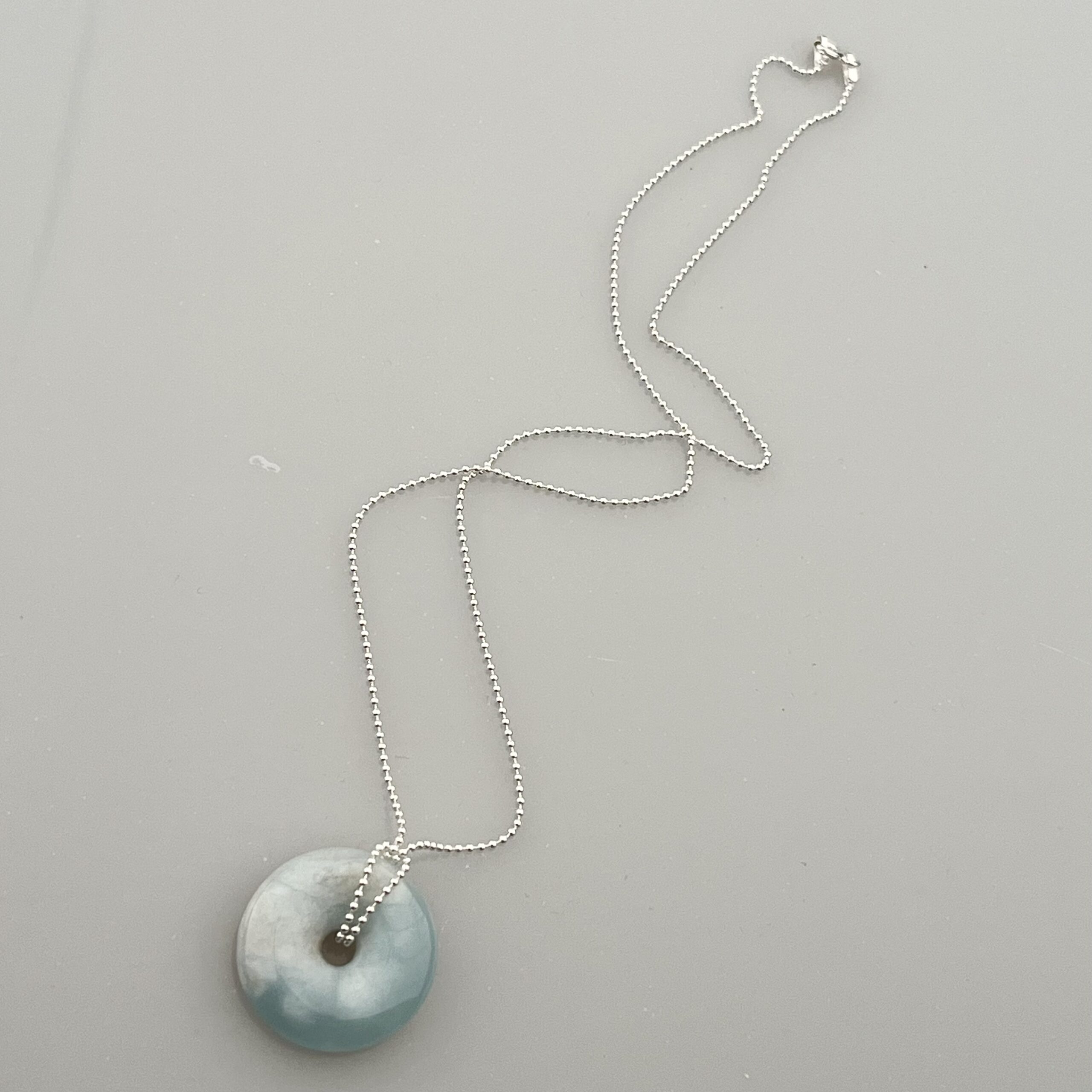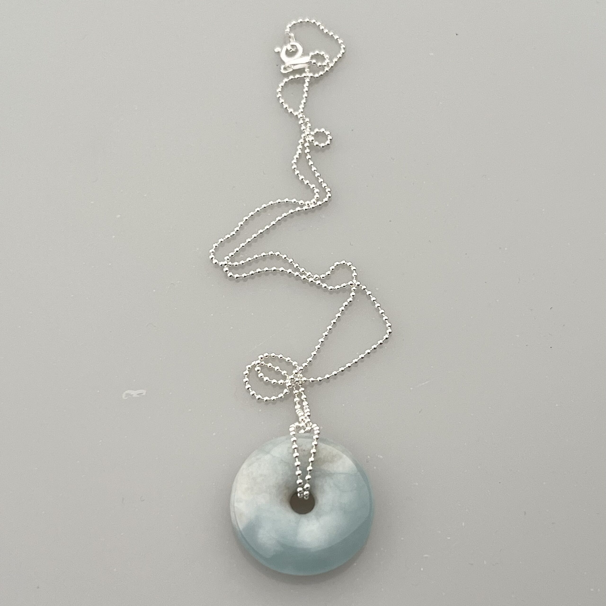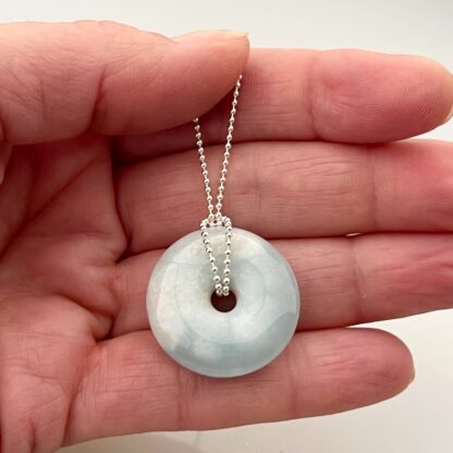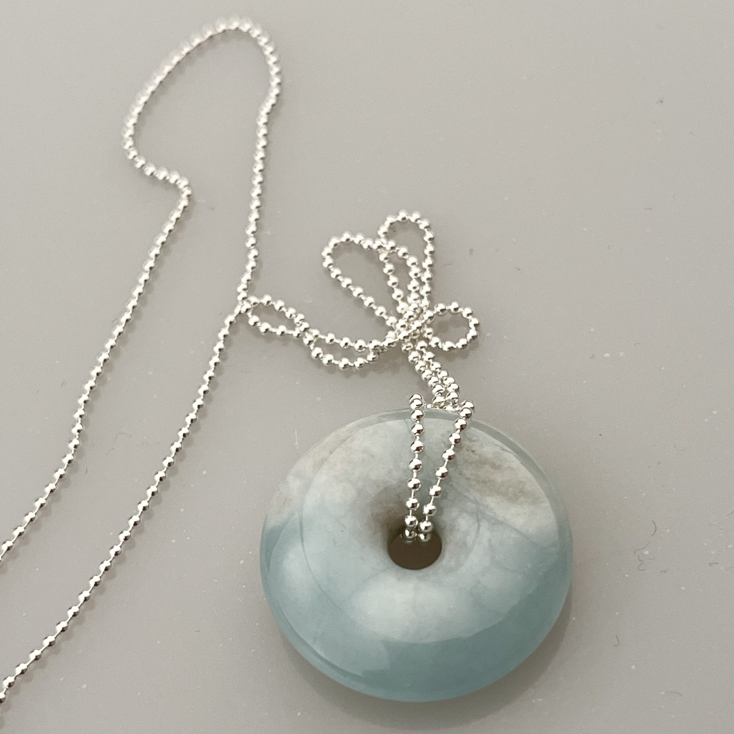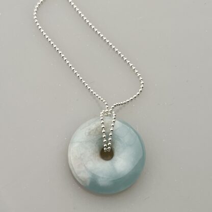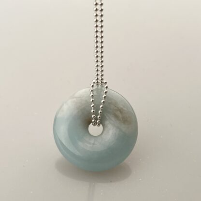 Donut vybroušený z Akvamarínu na stříbrném (Ag 925/1000) řetízku.