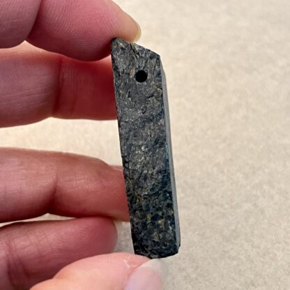Leštěná malá destička, provrtaná-lze nosit jako přívěsek. Zadní strana neleštěná.